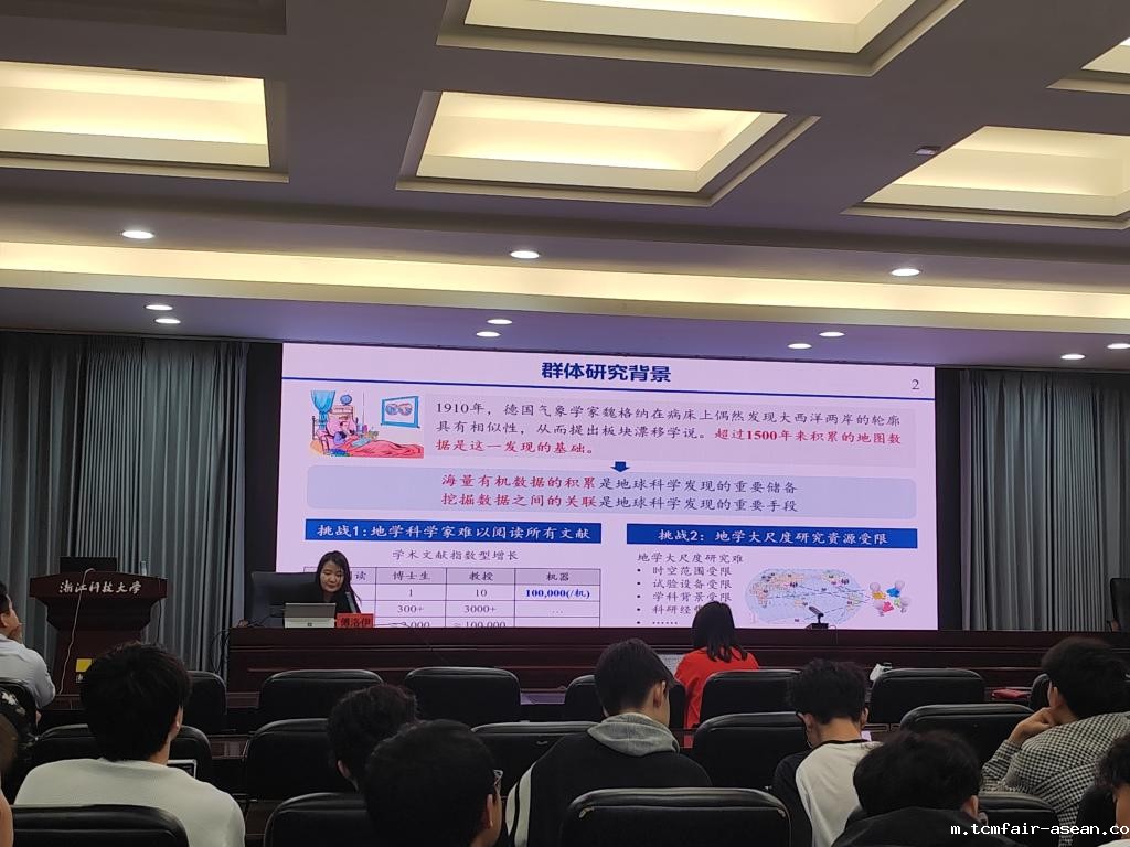 傅洛伊副教授以“地学知识图谱”为主题进行分享。她指出,文献数量呈指数级增长,地理学家面临海量资料难以全面掌握的困境,使地学研究资源受到严重制约。在此背景下,如何有效利用海量有机数据并挖掘数据间的关联,成为地球科学发现的重要突破口,这也促使他们团队致力于知识图谱技术的研究。她重点介绍了团队在地学大数据的结构化表示与深时空计算方面的研究成果,从“数、图、算”三个维度为在场师生进行了生动的讲解。